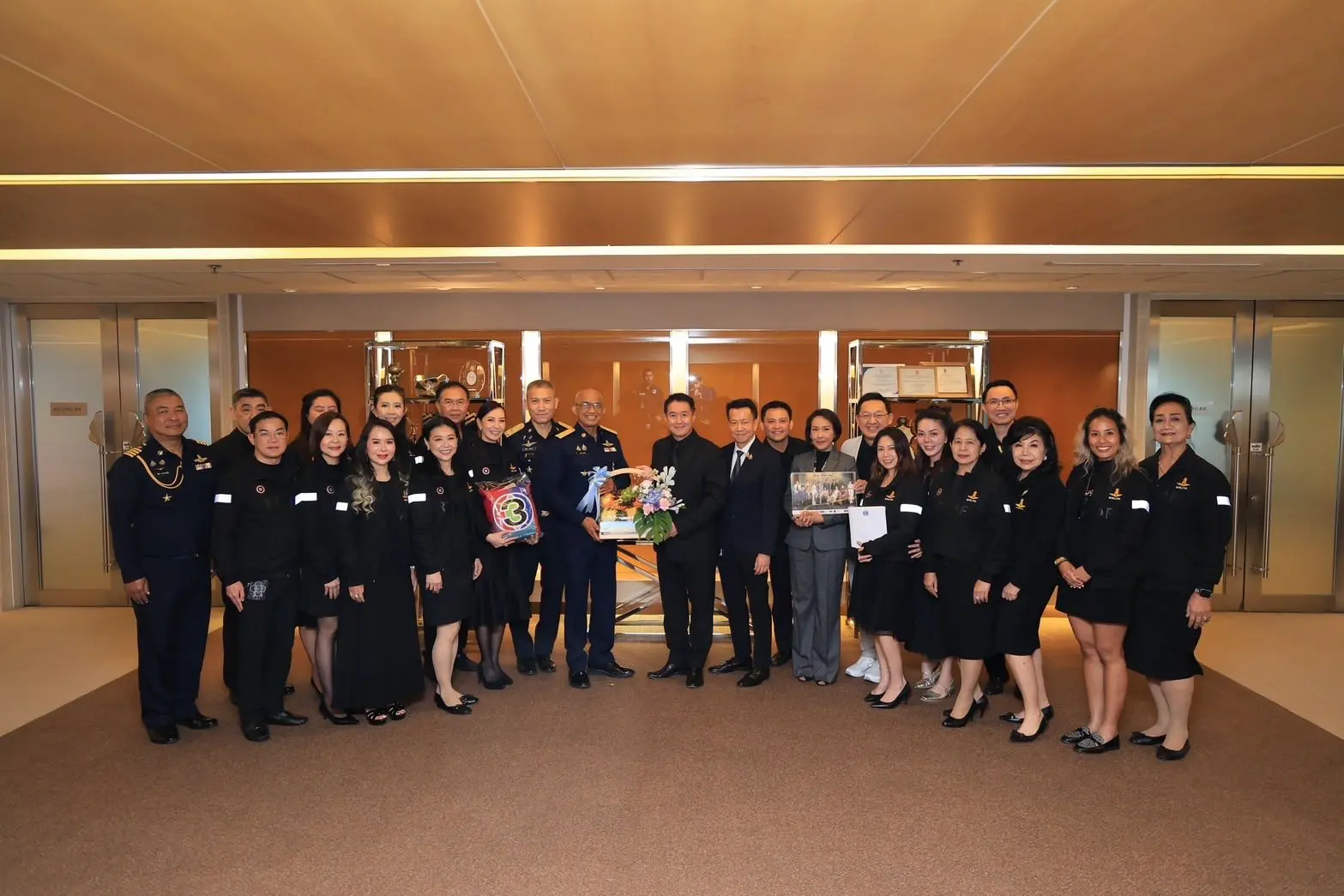 พลอากาศเอก วิสุทธิ์ สมภักดี ผู้ทรงคุณวุฒิพิเศษกองทัพอากาศในฐานะประธานกรรมการจัดสร้างพระสถูปเจดีย์องค์ที่ 3 พลอากาศตรี อภิรัตน์ รังสิมาการ รองเจ้ากรมกิจการพลเรือนทหารอากาศ พร้อมข้าราชการสังกัดกรมกิจการพลเรือนทหารอากาศ คุณโกมล เจียรวนนท์ ประธานบริหารชมรมพัฒนาสัมพันธ์ระดับผู้บริหาร กองทัพอากาศ และคณะกรรมการบริหารชมรมฯ เข้าพบคุณวิบูลย์ ลีรัตนขจร กรรมการผู้อำนวยการสายธุรกิจโทรทัศน์ของช่อง 3 (BEC World) ในโอกาสสวัสดีปีใหม่, ขอเยี่ยมชมกิจการสถานีโทรทัศน์ช่อง 3, ขอรับการสนับสนุนการประชาสัมพันธ์เชิญชวนร่วมสร้างพระสถูปเจดีย์องค์ที่ 3 ของกองทัพอากาศ และเพื่อกระชับความสัมพันธ์ระหว่างองค์กร เมื่อวันที่ 14 มกราคม 2569 ณ อาคารมาลีนนท์ ถนนพระรามสี่ กรุงเทพฯ