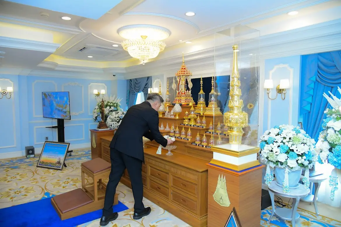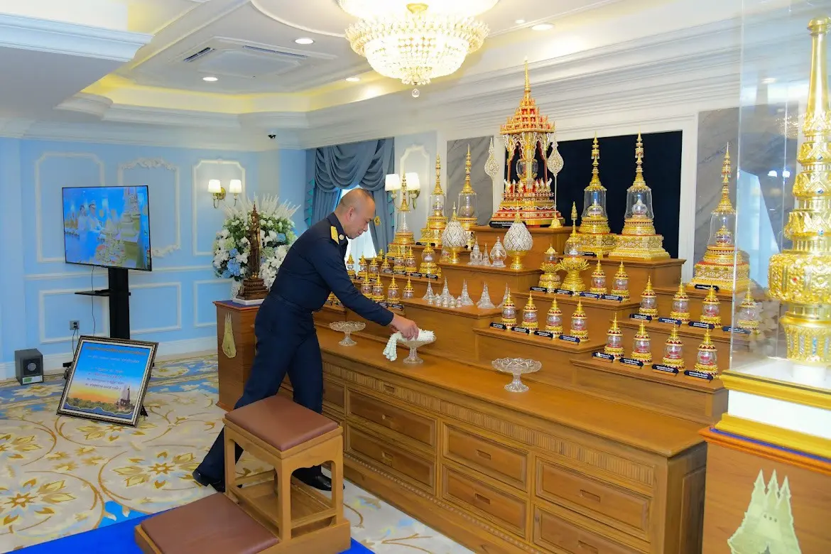 ต่อมาในเวลา 15.00 น. คณะผู้บริหารทั้งสองฝ่ายได้ร่วมประกอบพิธีสักการะพระบรมสารีริกธาตุและพระอรหันตธาตุ ซึ่งประดิษฐานเป็นการชั่วคราว ณ ห้องขัตติยะนารี กองบัญชาการกองทัพอากาศ